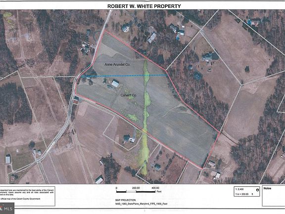 HOT OFF THE PRESS, NOW HAVE 3 VALID PERCS!!!!A rare opportunity!! 14.86acres in Calvert Co being sold only w/adjoining 4.831acre AA Co parcel. Beautiful rolling farmland in an area of lovely homes.Build your own single estate property, horse farm, cattle,vineyards. On Calvert parcel can create 3 lots easily. AA parcel not buildable but can be added to make larger bldg sites.Old house that is tear down. Do not enter. Have development analysis.. There is a relatively new pole barn on the property. Frontage is on Prout Rd.