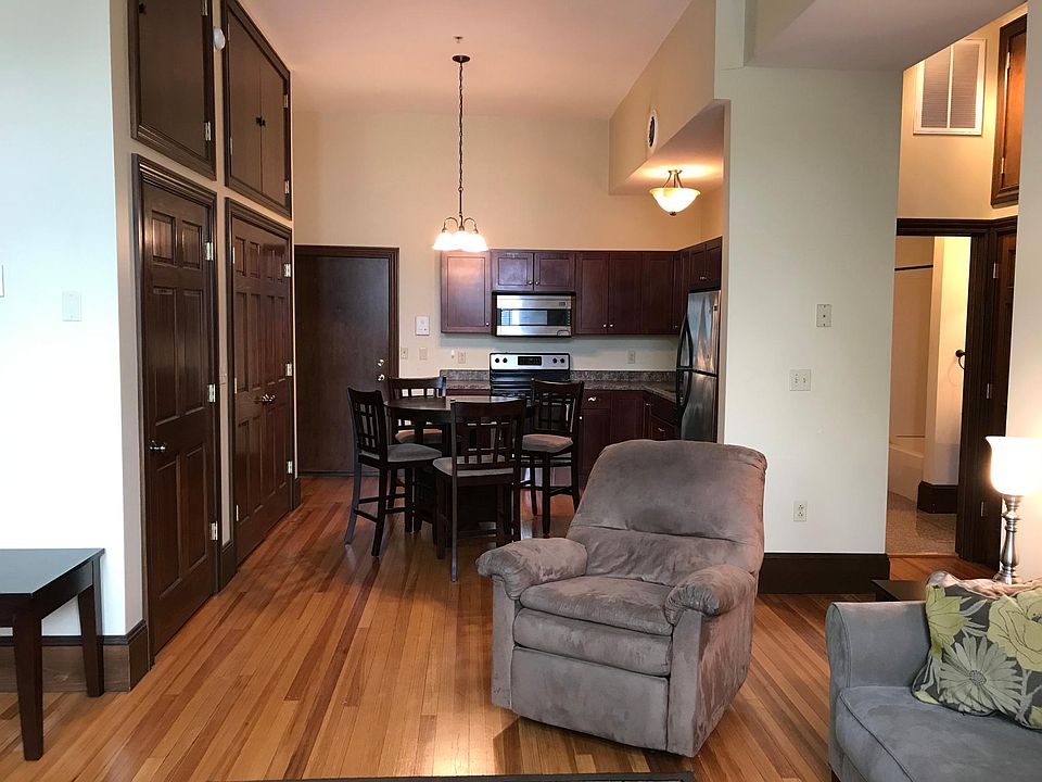NOW OFFERING 1/2 OFF FIRST MONTH'S RENT!! Located in downtown Williamsport on the corner of W. 4th Street and Cemetery Street. This beautiful former church was thoughtfully and carefully renovated in 2011 into 18 luxury apartments to feature new construction while showcasing the beauty of this building. 1 bedroom, 1 bathroom Granite countertops and hardwood floors Washer & dryer provided in apartment Dishwasher Kitchen sink garbage disposal Free gated parking with keycode operated automatic gates Locked entrances Free Wi-Fi Private gym for tenants Garbage included in rent Fenced in yard area with picnic area This property is conveniently located near Route 15 and I-180/Route 220. We do offer fully furnished apartments for an additional monthly fee. Garbage is included in rent. Free Wi-Fi throughout the building.