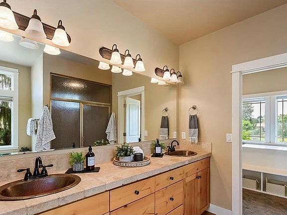 Stunning craftsman style home in quiet cul-de-sac. Large theater room with surround sound. Stone floor to ceiling wood-burning fireplace in living room with 15' vaulted ceilings. Radiant heat and steam shower in Master Bathroom. All bedrooms have access to en-suite bathrooms. Outdoor space with front/back patios, and fire pit. Barn with hay storage, 11x12 tack room. Two 12x9 stalls with removable panel connected two 20x12 paddocks. Outdoor arena 90x180. Separate covered RV parking with 3 RV bays.