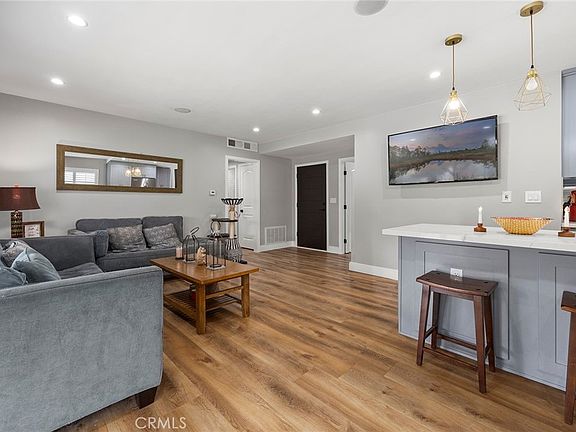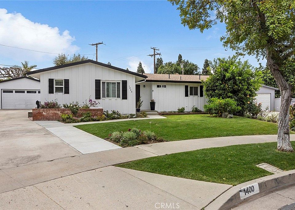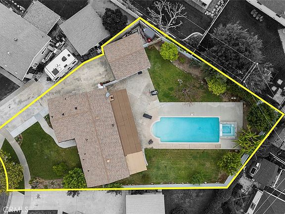 Charming and conpletely remodeled single level pool home on an extra large triangle shaped lot with a HUGE backyard. As you approach this beautiful home you notice the updated modern curb appeal and concrete walkway leading you to the custom front door. Immediately as you walk into this home you see new wood floors leading to the massive sliding glass door which exits out to the newer covered wood patio where the current owner enjoyed workout equipment and furniture to relax and take in the sparkling pool with spa waterfall, mature fruit trees, grass areas and overall an incredible backyard. Add to that the newer bbq island and you have the perfect combination for enjoying those amazing So Cal summers. The entire house has wood floors, smooth ceilings, double pane windows, full copper plumbing, upgraded electrical, plantation shutters, farmhouse sinks and more. The kitchen was redesigned to open up to the dining/family room areas with a breakfast island with microwave and stylishly upgraded with professional high end appliances(gas range) new countertops and backsplash on top of custom cabinets. The laundry room was completely redesigned to offer extra counter space, sink and storage space. You can sit in the family room and enjoy the openness of the interior and to the back yard. All the bedrooms are generously sized with ample closet space including rare and generous walk-in closets in the main and first bedrooms and extra storage shelves. The garage is fully finished and set back deep at the end of the long driveway. This home is move-in ready and you wont be disappointed. Nearby the area offers shopping, Fern Drive Elementary school and Muckenthaler Cultural center/park and all are in walking distance.