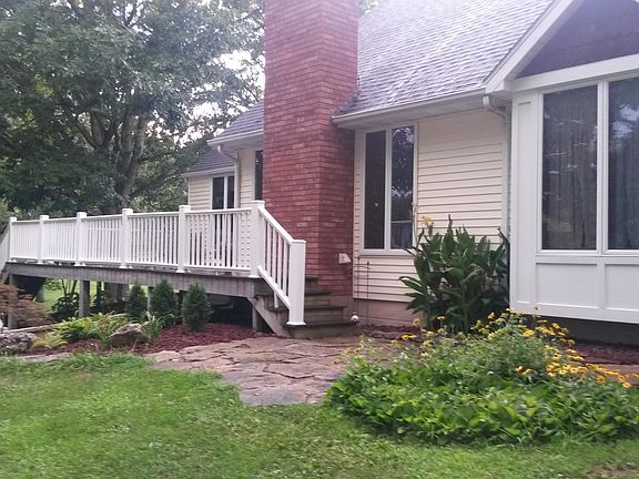 Motivated seller; Live in town with the feel of country, over looking beautiful stocked pond sets this 4 bedroom 3.5 bath home with breakfast room, dining room, walkout basement, plenty of storage,2 car garage, large maintenance free deck. Property also included a detached 2 car garage with bath room, washer dryer hook up and large bonus room upstairs. Nice landscaping,