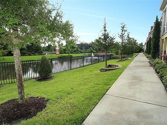 Graceful lifestyle awaits you at the desirable community of Jesups Landing! This well-designed sunbathed 4-bedroom/3.5 bathroom 3-story CORNER-UNIT home offers views of the beautiful POND, fountain & green space. Built with quality construction, 8ft steel-reinforced BLOCK WALLS on 1st floor, double pane windows & a 3-zoned A/C system. A wide front porch leads to the front door. The 1st floor contains a GUEST SUITE with full bath, walk-in closet, a large under stairs STORAGE area, hall closet & built-in storage shelves leading to the 2-car garage. The 2nd floor, with tile floors, includes a BRIGHT living room, dining room, half bath, kitchen with 42" espresso cabinets, crown molding, quartz counters & island and COVERED SCREENED DECK. Between the 2nd & 3rd floor is a large COVERED SCREENED TERRACE, ideal for entertaining. The 3rd floor with Australian pine engineered-wood floors offers the master suite w/tray ceilings, walk-in closet, master bath w/dual sinks & shower, 2nd bathroom, laundry room & two additional bedrooms. Community features include underground utilities, clubhouse, recreation room/fitness center, pool w/cabana & covered mailbox area. Located close to natural lands (Spring Hammock, Bear Creek Nature Trail) & walking distance to Winter Springs High, Choices in Learning, Central Winds Park, Dog Park, Seminole Trail, Lake Jesup, Winter Springs Town Center, a GROCERY STORE, cafes, shops & restaurants and local art venues & festivals. Come experience this unique gem! Schedule your showing today!