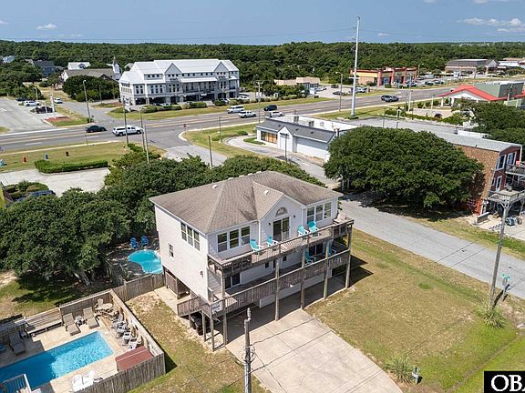 Perfectly positioned just a short walk from the ocean, this charming property offers the ideal blend of comfort, convenience, and coastal living. With a reverse floor plan that maximizes ocean views, vaulted ceilings that flood the space with natural light, and a design that combines style and functionality, this home has everything you want in a beach retreat. The top floor is the heart of the home, featuring a spacious living area with access to an ocean-side deck, perfect for enjoying glimpses of the Atlantic. This level also includes a well-equipped kitchen, a convenient half bath, and an ensuite bedroom with a private bathroom, providing a peaceful escape. The middle floor is dedicated to relaxation, offering three comfortable bedrooms. One is another ensuite, while the remaining two share a well-appointed bathroom. Each room is designed to ensure comfort and privacy for family and guests alike. The bottom floor is all about entertainment, boasting a game room complete with a pool table, a kitchenette for easy snacking, and another half bath. This versatile space is ideal for hosting gatherings or enjoying quiet moments. Outside, the backyard offers a serene retreat, shaded by beautiful live oaks. Here, you can unwind by the saltwater pool, relax in the hot tub, or enjoy a meal in the shaded picnic and grilling area. The low-maintenance vinyl siding ensures that the exterior remains pristine, allowing you to focus on enjoying your home. Located at Milepost 9.5, 1400 Wrightsville Boulevard provides easy access to the best of the Outer Banks. With top dining, shopping, and the beach just three blocks away, this home offers the perfect blend of convenience and coastal charm. Don’t miss this opportunity to own a well-appointed beach home in one of the most desirable locations in Kill Devil Hills.