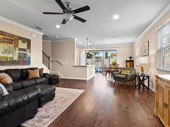 Welcome to your dream home located in luxurious Bayberry in Bartram Park! Situated on a preferred lot this end unit home features a delightful wrap around porch, and longer driveway. The resort style cabana, pool, and fitness center are steps away from your front door. Once inside, you're greeted with the warmth and charm of hardwood floors on the 1st floor. The open floor plan is well designed and you'll love the upgrades. Granite counter tops, subway tile backsplash, stainless appliances, pendant and recessed lighting, crown molding and more! The stackable sliders open to your private screened patio perfect for inside/outside entertaining. Upstairs the spacious master suite features a tray ceiling, crown molding and a huge walk in closet. Don't wait! Schedule your showing today!