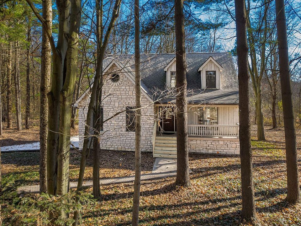 Feel like you're in Hocking Hills at this scenic and peaceful home nestled on a wooded lot with a stream and over 5 acres, yet be convenient to the new Intel and 10 min. from shopping/restaurants. The large living room provides stunning views of the wooded lot. Bright and vaulted, the kitchen has white cabinets, Corian counters, stainless appliances, a pantry, and a breakfast bar with seating. Laminate in the main level living spaces. Spacious dining room. Main level primary with laundry, vaulted ceiling, double closets, and en suite bath. Both upper level bedrooms offer 2 closets. Upper bath with garden tub and window seat. Oversized 2-car garage with additional storage. New roof and blown in insulation in attic 2020, furnace 2015. Large screened porch overlooks the peaceful backyard!