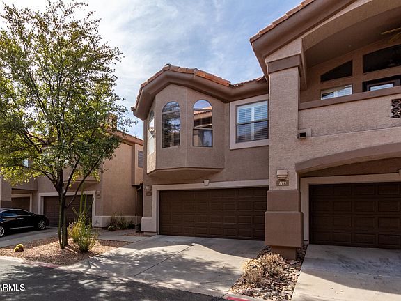 Bella Vista is a premier resort-style gated community that offers 4 pools (1 heated) spas, BBQs, a putting green, clubhouse, game/exercise room & stunning mountain views! This gorgeous 3 bedroom 2.5 bath townhome in Scottsdale is in a fantastic location. Close to restaurants, shopping, schools, parks, Scottsdale Airport & easy access to the 101 Fwy. Your kitchen offers stainless steel appliances, granite counter tops,a breakfast bar, full height tiled backsplashes, a pantry & plenty of crown molding cabinetry for storage & organization. Your spacious master suite offers a plethora of natural light a walk in closet, dual vanity a walk in shower & soaking tub with jets, as well as direct access to your covered balcony. This gated community home also offers a new AC unit (2024), a gas fireplace in the living room, upgraded ceiling fans & lights, a covered patio & a 2 car garage with epoxy flooring & cabinets for extra storage & organization. This gem in the desert is a Great Buy & a Must See!!!