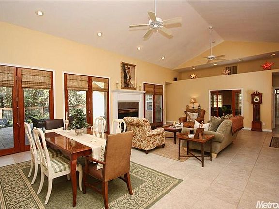 Single story home with upgrades galore. Complete remodel of the kitchen, high-end appliances, lrg island, farm sink, lrg windows, its gorgeous! Open floor plan, tile & hardwood floors throughout, vaulted ceilings, 10 ft tall French doors, built-ins & 2 fireplaces. Enchanting master suite w/ fireplace, walk-in closet, patio & luxurious bath. The rear yard has an expansive stamped concrete patio with pergola area, fenced & landscaped all on automatic water & timer. A truly magnificent home!
