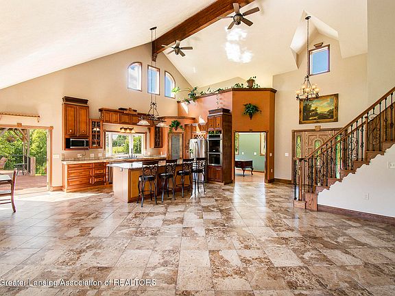 Welcome to this Stately country home with traditional heart, nestled on 15 acres of pure nature. Enjoy the advantage of Haslett schools combined with Woodhull township taxes. The open floor plan and cathedral ceiling will leave you in awe. The fully finished basement boasts a large family room, perfect for entertainment or a home theater with area ready for an indoor hot tub and wet bar. Upstairs is plumbed for a 4th bathroom. You can enjoy the outdoors with a private pond, true haven for nature lovers and hunters. Set in a peaceful location yet close to amenities, this property offers a tranquil lifestyle with the convenience of nearby schools, shopping, and dining. Don't miss this unique opportunity to own a piece of paradise! Seller is a real estate agent in Michigan.