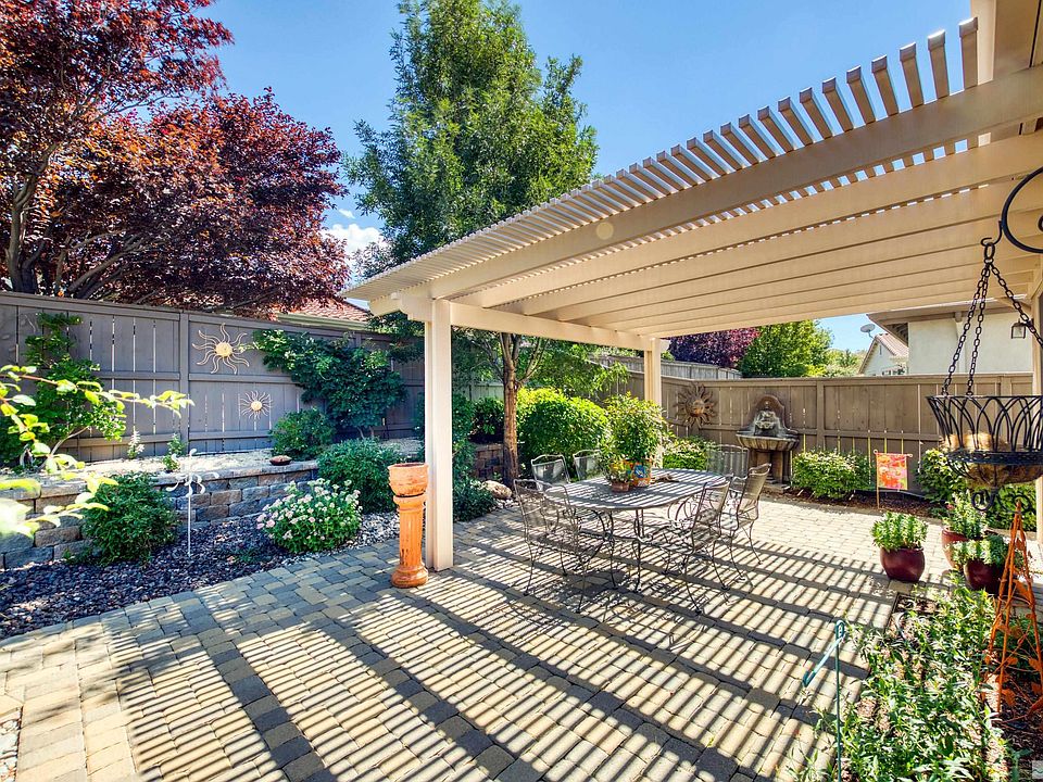 Welcome to your dream home in the picturesque neighborhood of Curti Reno in South Reno. This exquisite single story residence boasts over 2300 sq. ft. of luxury living providing the perfect blend of comfort and sophistication. As you step inside you will be greeted by the warmth of color and design affording an atmosphere for family gatherings or entertaining guests. The heart of the home is a well appointed kitchen which seamlessly combines functionality and style. Stainless steel appliance, with, and an abundance of storage space and center island makes this a culinary delight. One of the unique features of this home is the private courtyard upon your entry. The primary bedroom has access to the nicely landscaped yard. With a spacious bath and walk in closet, double sinks, garden tub, separate shower The low maintenance professionally landscaped backyard providing a private oasis is a perfect palace to relax, read a book or enjoy your morning coffee with complete privacy.