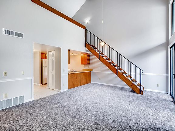Remodeled spacious 2 story penthouse condo with towering vaulted ceilings and drenched with natural light! It boasts an open floor plan with brand new paint throughout, new carpet, refinished tub, wood burning fire place, tile in the kitchen and bathroom, large walk-in closet in the loft, and a spacious balcony for enjoying the beautiful Colorado summer evenings. Amazing location being located in the Cherry Creek School District, and across the street from the Cherry Creek State Park, with easy access to Parker Rd and I-225, near the light rail station, shopping, dining, and more. An all around great move-in ready condo!