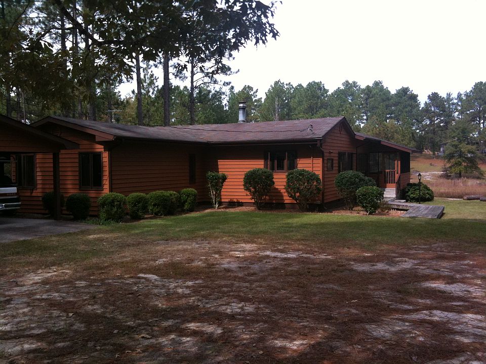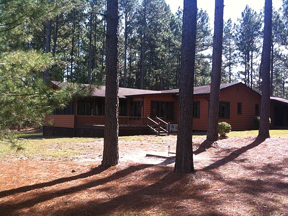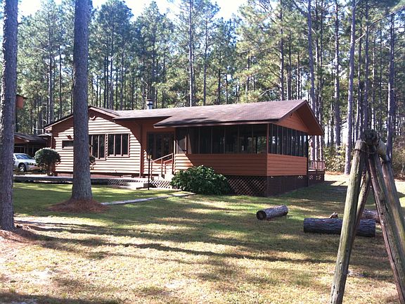 Scotland County. Attractive 2 BR, 2 bath cedar-sided home in private setting on a lake with 1.9 acres between Laurinburg & Southern Pines. Convenient to Camp Mackall.$120,000.
