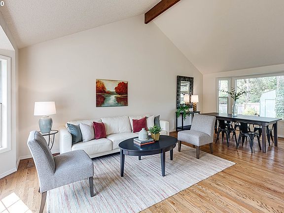 This GEM lives really large & sits on a generous .22 ACRE cul-de-sac lot. Private setting w/ mature landscaping & fenced w/ garden, fire pit & shed. 3 bedrooms 2 1/2 baths w/ wood beam VAULTED living & dining room. SOLID oak hardwood floors on the main. Updated kitchen w/ sweet family room & modern wood stove! Newer roof 2020 & furnace serviced! This is move in ready!