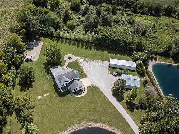 Twin iron lions guard the private entrance to your own Roanoke 4+ acre oasis. Exceptionally long driveway takes you back to the secluded homestead surrounded by trees, nature, and private pond with dock. Built in 2006, all 3 out-buildings have electricity. Heat pump (primary, propane back-up) and central air. Surround sound ports in the living room, master bedroom, front and back porch, and bedrooms at bed wall. All phone and cable boxes are piped to the 800 sqft finished basement. Inside the 1,600 sqft house you'll find laminate wood flooring in the 3 bedrooms and 2 full, 2 half baths, and carpeted stairs. Plenty of storage space in the attic above the house and garage, large walk-in pantry, and walk-in master closet. Master bedroom boasts sliding door to a private 10x10 wood deck, ensuite bath with dual shower head. The open plan kitchen has a wrap-around counter leading into the breakfast nook/open living room area, and above the cabinets lighting, as well as recessed lighting, (dimmable in living room). Special features include Spanish lace ceilings, propane fireplace, recessed lighting, a wood pallet wall in entry bathroom. Finished basement has it's own half bath and vinyl flooring. Through the sliding glass doors on main level, you can relax comfortably on the 20x24 screened in patio with two remote controlled ceiling fans, with wiring in place for a hot tub. Plenty of room for fun with a basketball hoop, space for a pool, garden, and barbecue/fire pit area. Tension fencing for horses, and run-in, (no stalls).