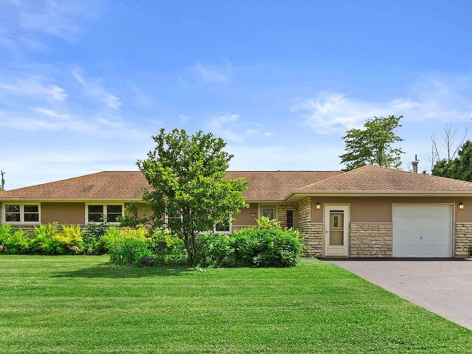 4 Bed/2 Bath Property centrally located in New Berlin! This 2100 sqft ranch style home offers a cozy and charming living space with tons of natural light. This property features main floor laundry and a spacious living room that opens to both the formal dining room as well as the kitchen. Newer flooring and both baths were recently remodeled! Primary Bedroom has an ensuite bath as well as a large closet! Walk downstairs to the full block basement which houses the pool table, a built in wooden bar, and an electric fireplace. 1.5+ garage currently w/ a 9x20 room next to garage (originally was 2+ Car garage)New Owner can easily return back to 2+ car if desired. Step out to the 10x20 screened in sun room to see your half acre+ lot w/ partially fenced in back yard and the in-ground pool!
