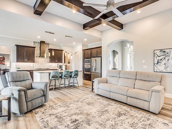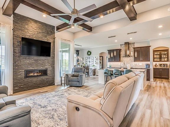This incredible luxury family home features elegant options and finish details that make this home over the top for function and livability. Every detail was meticulously thought out, and completed to perfection. Located in The Garden Walk Subdivision, and the highly sought after Andover School District, this home is situated on a private corner lot in a park like setting with mature trees and minimal neighbors. You will be captivated by the open floor plan with warm woods and quality finishes. The main floor features a spacious great room with a box beam ceiling, a dry stacked stone fireplace surround, the dream kitchen features a gas cook top, pull out cabinet shelves, and soft closing cabinet doors and drawers, a butlers pantry, and a quick access pocket office. The roomy dining space is adjacent to the kitchen, and is a perfect place to access the covered screened deck with a ceiling fan, and gas line for a grill or fire table. The owners retreat features electric shades in the sleeping area, the spa bath has toe kick lighting, a luxury walk in shower, a walk in closet with built in drawers, and convenient access to the laundry room complete with a wash sink. In the fully finished walk out lower level, there are true 9 ft basement walls, a plywood sub floor system for warmth and comfort, a family room with networked audio and video, a games room with ceiling fans, luxury vinyl flooring, and a lockable hidden room behind the book case. Bedroom 4 has a private bath with a backlit vanity mirror, bedroom 5 has easy access to the hall bath that features two sinks, and double back lighted vanity mirrors. The elegant wet bar features back lit cabinets, granite counter tops, and a door out to the walk out patio with rubber flooring and steps up th the fenced back yard. The oversized 3 car garage features a high lift garage door for a car lift in the 3rd bay, and the garage is insulateed and sheetrocked. Outside you will find a newer impact resistant compisition roof, fiber cement siding, security cameras, and a beautifully landscaped yard with an irrigation well and sprinkler system! There are just so many extra features, you really have to see them to believe them! This home is perfect for your family, for entertaining, and is so conveniently located to many shopping, dining, and entertainment options! Start living your best life in this wonderful quality built home in beautiful Garden Walk! Some information may be estimated and is not guaranteed.