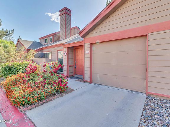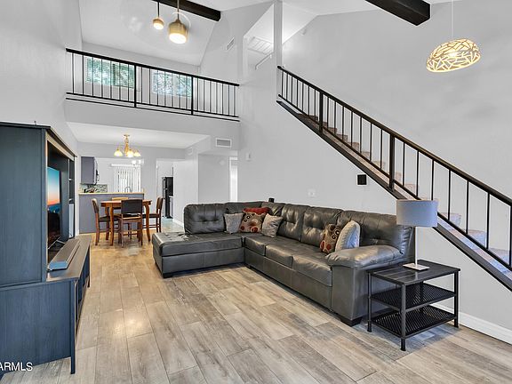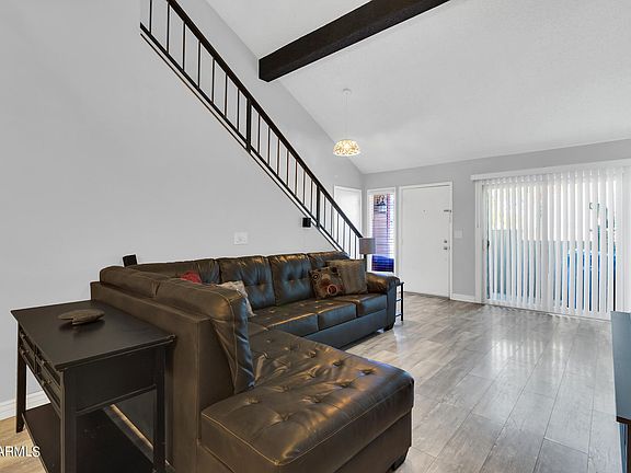 Take a break from the hustle and bustle, feeling like you're on a retreat to the mountains in the quiet and relaxing community of The Pines. This cute townhome offers two bedrooms with a loft is close to ASU West and has great rental potential or would make a sweet home away from home for your college student. Front and rear slider doors and all windows except small window by front door replaced in 2022. Refrigerator, washer and dryer to convey.