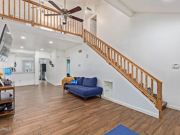 Rare 3 bedroom, Tastefully updated home within the lush, quiet Pines Community which is located directly across from ASU West. The Kitchen has Beautiful Quartz countertops, Updated cabinets, new lighting, tile floors installed downstairs and the downstairs bathroom has been updated as well. The Vaulted ceilings throughout the home really make the home feel large. The loft/bonus room upstairs adds a nice feature which creates another living space. This won't last long, make an offer today