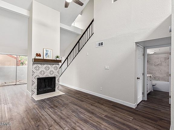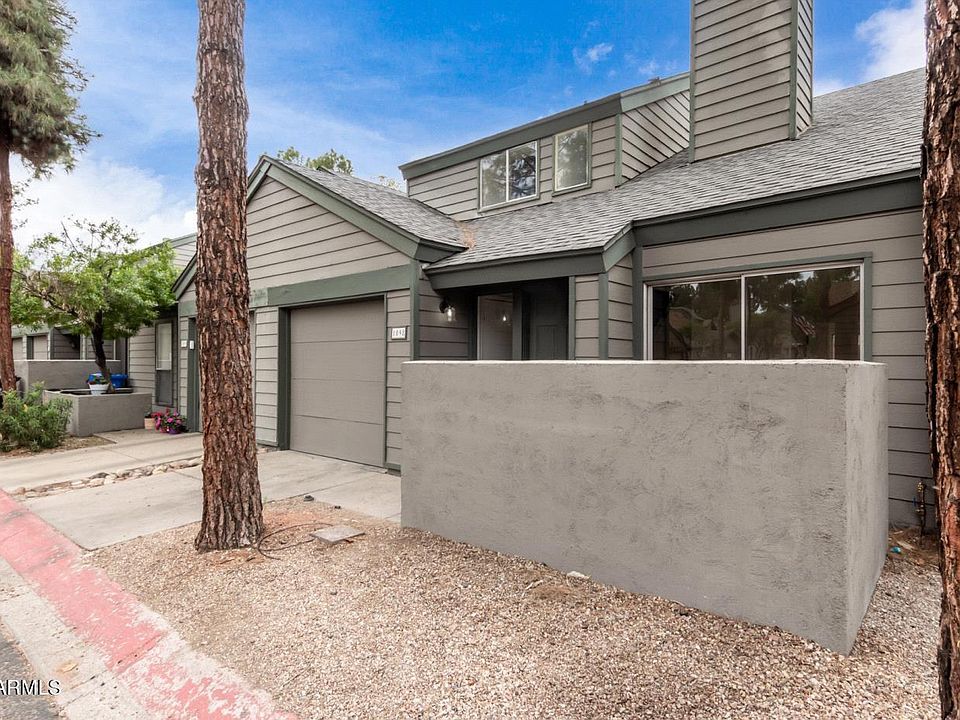 You will fall in LOVE with this renovated condo in the wooded community of ''The Pines''. Beautiful floor to ceiling fireplace is the perfect family room centerpiece. The lovely kitchen boasts all new shaker cabinets, granite countertops, breakfast bar and new SS appliances. Main floor primary suite has a slider the exterior and a spa like bathroom with a new vanity and tile surround. Upstairs you will find two more spacious bedrooms and another bathroom with a new vanity and surround. All new LVP flooring, baseboards, carpet, interior paint, fixtures, etc. Very close to ASU West campus and centrally located to all that Glendale has to offer! Community pool!