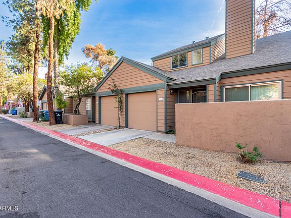 Welcome to this lovely 3-bedroom townhome in the Pines! You're greeted by a convenient garage for secure parking and a front patio. The living/dining room showcases soaring vaulted ceilings, a soothing palette, clerestory windows for abundant natural light, and attractive wood-look flooring. The kitchen comes with flat-panel cabinetry, SS appliances, and a practical pass-through with a breakfast bar for casual meals (SS refrigerator and dryer to convey. Washer does not convey.) The main bedroom offers soft carpeting, sliding door access to the back patio, and a private bathroom for added comfort. Enjoy Community amenities such as a spa and a refreshing pool. Don't miss out on this fantastic opportunity!