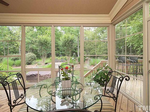 "Show Stopper" Home with"3-Season Porch". Outdoor living at its BEST: Phenomenal, LEVEL,private, Nature view with landscaped patio and hot tub. PRIVATE Backyard on 0.4 acres in desirable Governors Lake.Fabulous home designed with perfect detail. Master on Main.Gracious Living Room with tall ceiling and a wall of windows with plantation shutters, Beautiful Kitchen w/granite and SS appliances. Cul de sac. Close to UNC, RTP,RDU and Duke. Walk to shops, dining, community pool, tennis and parks.