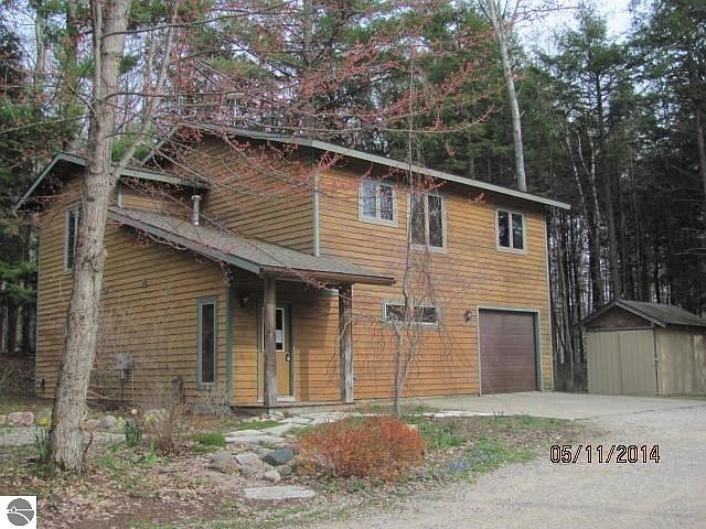 REDUCED!!Bring All Offers! Wonderful Home~Beautifully Secluded Contemporary on 10 Wooded acres, just north of Elk Rapids. Unique design featuring 2 floors of living space including a family room, den/4th bedroom on main; upper floor features beautifully appointed living space including island kitchen, cathedral ceilings and windows overlooking the private acreage! Lovely master bedroom including private master bath with soaking tub, tile shower. Perfectly located in Elk Rapids School District, within minutes to town. This is a Fannie Mae Homepath Property and qualifies for Homepath Mortgage financing with as little as 5% down. This wonderful timber frame home will not disappoint! Schedule your tour now~make it yours!