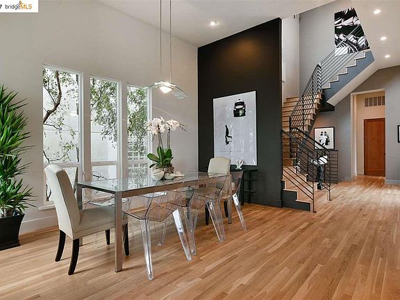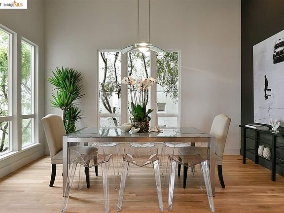 Striking Montclair contemp w/soaring spaces & stunning SF, GG & bay views! Open flr pln. Walls of windows capitalize on the views. French door from the fam room to the terrace. Eat-in kit. Lux master suite w/a wall of west-facing windows & small terrace looking out to the views. Master bath w/views. Terrific separation of space. En suite bed/bath, half bath & sizable laundry on the main level. 2 additional bedrooms & 1 bath one flight down from the main level. Covered terrace looking out to the views is accessed by both lower bedrooms. 2 car garage w/interior access. Street parking for guests across the street on Pinehaven- a rare commodity in Montclair. Row of trees at the back of the lot provides a screen to the homes below. Straight shot down Broadway Terr to Hwy 13 & 24, Lake Temescal. Minutes to quaint Montclair Village, Rockridge & BART. Spectacular views & stunning interiors we cannot imagine a better place to relax, and unwind or just hangout than 14004 Broadway Terrace!