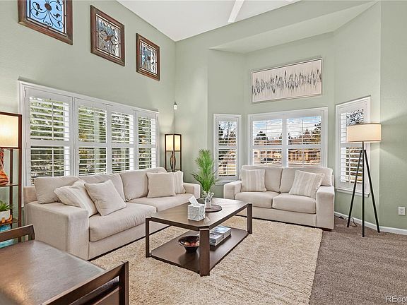 Pristine end unit in Cherry Creek Park Townhomes! You'll be welcomed by the inviting ambiance of the open, multi-level layout accentuated by high ceilings that create an airy atmosphere flooded with natural light. The main level sets the stage for relaxation and entertainment with a cozy living room featuring a gas fireplace and built-in shelving. The heart of the home resides in the expansive dining and kitchen area where you'll find extended granite countertops and gleaming hardwood flooring. Step out onto the balcony to savor your morning coffee with picturesque views. The kitchen showcases a breakfast bar, stainless steel and white appliances, and a pantry. Upstairs, two generously sized bedrooms offer a serene retreat for rest. The primary bedroom is a sanctuary itself featuring built-in shelving, a walk-in closet, and a luxurious five-piece ensuite bathroom. The second bedroom also boasts an ensuite bathroom for added convenience. The finished basement offers versatility with a third bedroom accompanied by a wet bar and adjoining half bathroom. The large front patio surrounded by greenery provides a charming setting for enjoying the outdoors while the convenient location puts you moments away from I-225 and Arapahoe Rd, ensuring easy access to everything you need. Being directly across from Cherry Creek State Park means endless opportunities for outdoor adventures and recreation right at your doorstep. Don't miss your chance to make this exceptional townhome your own!