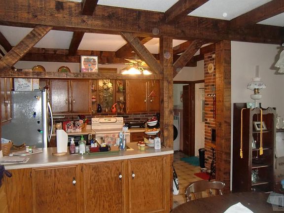 Beautiful three-bedroom acreage right at the edge of town. This restored two-story farmhouse has incredible natural woodwork with an open staircase in the living room and den. There's also a fireplace and lots of character throughout including beams in the kitchen and dining space. Main floor laundry, enclosed back porch, very large closets in the bedrooms, plus potential living space in the unfinished third floor. Three outbuildings on site are included.