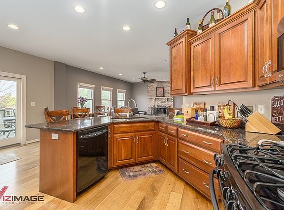 Beautiful, executive style home that's nestled on a prime lot overlooking a scenic pond! This lovely home is loaded with upgrades and features: Gourmet kitchen with custom cherry cabinets with crown molding, granite counters, stainless steel appliances, breakfast bar; White oak rift & quartered 6" hardwood floors throughout main level; Spacious family room with cozy fireplace; Main level office; 2 story sun-filled formal living room; Loft overlooking dramatic 2 story foyer; Large master suite boasting walnut flooring, a walk-in closet and luxury bath with whirlpool tub, separate shower and double vanity; Kohler plumbing fixtures & granite vanities in baths; Full, finished basement that offers a recreation room plus a 5th bedroom.