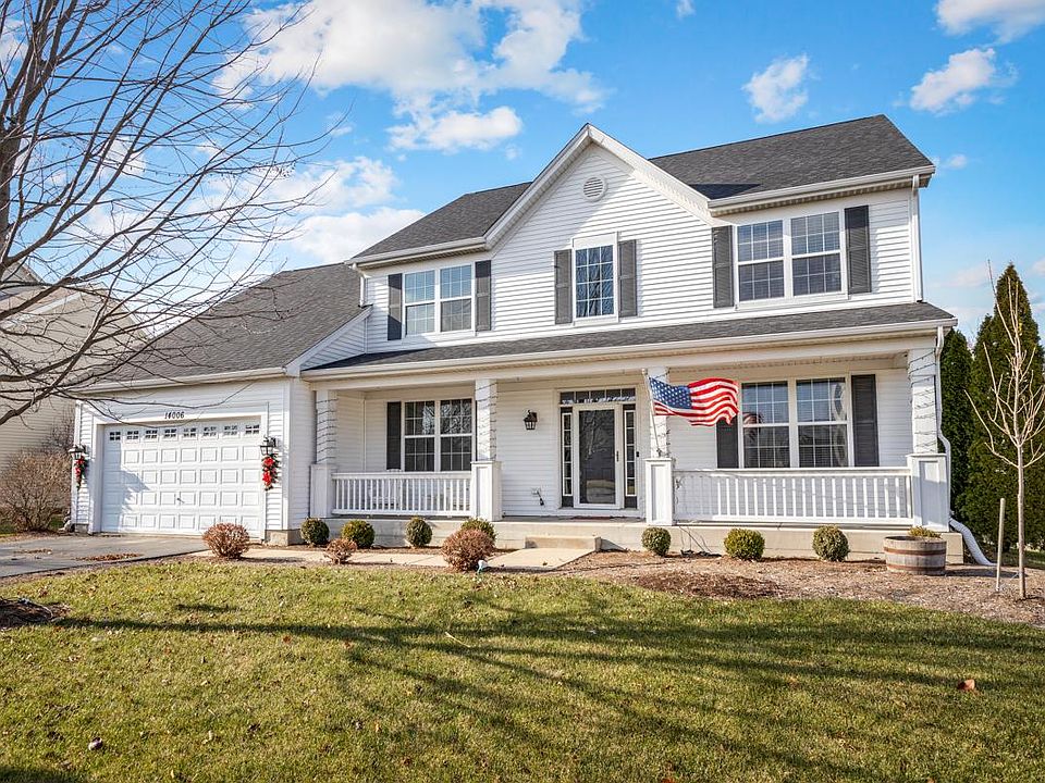 Plainfield North. Inviting front porch welcomes you to this pristine 2 story home in Prairie Knoll subdivision! Grand foyer with split staircase. Amazing top of the line kitchen featuring a walk-in pantry, double oven/cooktop/microwave/refrigerator/dishwasher, breakfast bar island, plenty of cabinet space with the 42' cherry cabinetry and additional countertop desk space! Plenty of living space featuring living room, dining room, family room and a den! First floor front room remodeled with French door, built-in cabinetry, 1st floor freshly painted. 4 sizable additional bedrooms on the second floor and of course an enchanting master suite! Master BR boasts an updated full bath with double sinks, separate shower, soaking tub and walk in closet! Get ready to enjoy the fall/spring/summer on your deck with the most breathtaking pond/lake views right from your backyard! New furance and A/C 2021.New roof 2019. Main level freshly painted. Close to local restaurants, shopping, entertainment and parks! 5 star home and location.