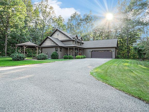 This stunning 4 bed, 4 bath home on 1.5 acres has something for everyone! Built in 2005, it features hardwood floors, stainless steel appliances, in-floor heat, central A/C, and high-speed internet. The main floor primary bedroom is a true retreat with deck access and a luxurious bath with jetted tub, separate shower, & large walk-in closet. The full, finished basement has a bedroom, bathroom, & open layout- perfect for guests. There's plenty of storage in the attached garage and pole barn. Beautiful gardens and a gazebo complete the picturesque setting. Nature lovers & sportsmen will love 13,000+ acres of Manistee National Forest as their backyard + 3 nearby Manistee River access boat launches! Don't miss out on this rare opportunity to enjoy nature and comfort in one beautiful package!