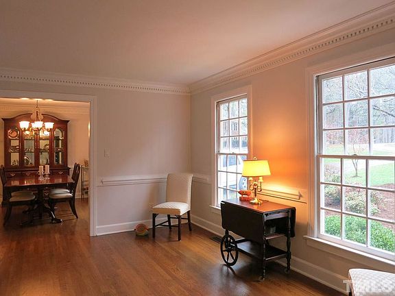 RENOVATED home on 1.2 ac wooded lot-backs to Falls Lake Corp Of Engineers land! Private bkyd surrounded by trees w/big paver Patio & 2 lg Decks. NEW: heat pumps 2018/2011, water htr 2013, roof 2010! KIT & all 3 Baths redone w/granite; large rms include FamRm w/brick FP & 2 sets french drs to vaulted ScreenPorch. Formals w/hrdwd flrs & deep moldings. KIT w/SS appls/island/bay-windowed Bfast area. Lg MBR w/WIC, dbl sinks, soaking tub, sep shower + 2nd BR on 1st flr. Huge BonusRm, GameRm/ExerciseRm, Office!