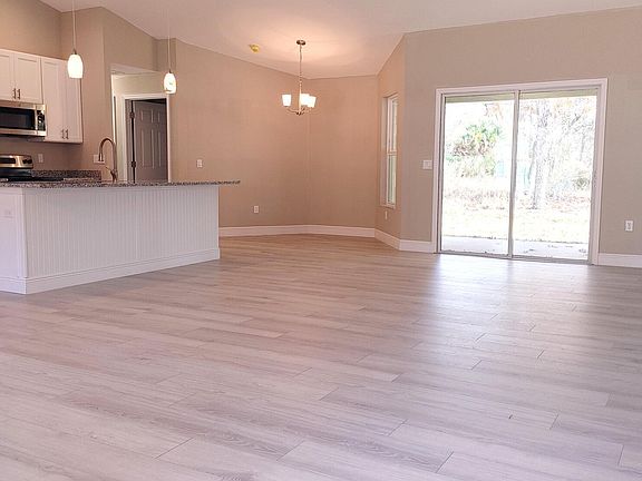 Active under Contract. BRAND NEW home just completed and it's IMPRESSIVE!! Start the new year off right with this 3 bedroom, 2 bath home with OVERSIZED 2 car garage ( an additional 6 FEET IN DEPTH) to accommodate those larger vehicles; with close to 1/2 acre offering plenty of privacy! This home offers VINYL PLANK flooring throughout; an OPEN CONCEPT great room, dining room, breakfast nook and kitchen all with cathedral ceilings; modern light fixtures; ceiling fans, beautiful GRANITE counter tops; 42 inch soft close cabinetry; SS appliances (including microwave, dishwasher and range); an 8' CENTER ISLAND with breakfast bar and pendant lighting; large double door PANTRY; spacious master suite with 2 WALK-IN CLOSETS and ensuite with dual sinks and walk-in shower; interior laundry room; split bedroom floor plan; large covered patio with private backyard and more than enough space for an outdoor kitchen and pool. You definitely need to see this home in person to appreciate the quality workmanship that went into this exquisite home!