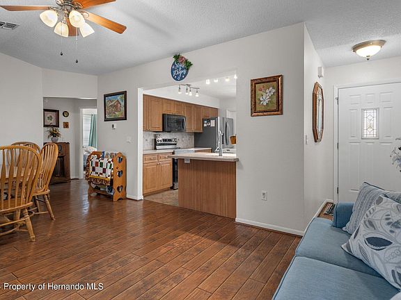 Discover your ideal Spring Hill residence featuring 3 bedrooms, 2 baths, and a welcoming heated pool. The moment you step into the front den/dining room, a sense of 'at home' envelops you. The primary suite awaits to the left, while the kitchen and additional bedrooms are situated to the right. The rear living room opens up to the pool area, boasting a delightful sitting area with ample storage space and a sink. Over the past 2 years, various upgrades have been made, including a new refrigerator, range, garbage disposal, and the addition of the pool heater. Other great attributes of this home include the metal roof and also the convenience of a versatile hot water heater that operates on electric or heat pump. This sale only includes Lot 5 with the home - It does not include Lot 12 with the garage behind it. A privacy fence will be installed after sale between the home and separate lot. Don't miss the opportunity - call today to arrange your exclusive tour.