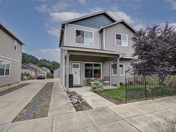 Welcome to this modern and low-maintenance 2-story detached condo that lives like a stand alone residence! The main level features a bright and open layout, with a stylish kitchen complete with granite countertops, subway tile backsplash, stainless steel appliances, a double sink, and a spacious walk-in pantry. The living area flows easily to the dining space and includes a half bath, large coat closet, and direct access to the garage—plus extra storage space. Upstairs, you'll find four comfortably sized bedrooms and two full bathrooms, including a private primary suite. Both bathrooms feature granite countertops and a tub/shower combo. The upper level is finished with cozy wall-to-wall carpeting, while the bathrooms offer easy-to-clean hard surfaces. Additional highlights include tall ceilings, durable laminate flooring on the main level, and energy-efficient mini-split heating and cooling throughout. Outside, enjoy the covered front porch and a low-maintenance, partially fenced yard. Located in a private cluster of four homes, this detached condo offers the privacy of a standalone unit with the convenience of condo living. Garage is pre-wired for EV Charger. Additional parking beside garage.