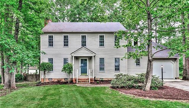 Providing Smart, Functional Living Spaces Throughout! This FRESHLY painted 2-story transitional with 1,864 square feet, 3 bedrooms and 2 bathrooms offers an open flowing floor plan. Nestled on a shaded cul-de-sac lot just 1/4 mile from golf course in the quiet community of Brandermill, this home features gleaming JUST polished wood floors throughout the 1st level. Entertaining is a breeze in the formal dining room with chair railing, crown and a chandelier. The cozy family room with a brick, log-burning fireplace, crown and chair railing, provides direct access to the over-sized deck overlooking the fenced backyard. The adjoining eat-in kitchen is equipped with a media center, white cabinetry, black appliances, pantry, casual dining space illuminated by a large picture window, and, direct access to the attached 1-car garage. At the top of the stairs youll find the intimate master bedroom with walk-in closet and en Suite, as well as two additional bedrooms and a guest bathroom. Protected by a 2-10 Home Buyer Warranty and ideally located near shopping, restaurants & interstates, this HOME is the perfect place to start making memories.