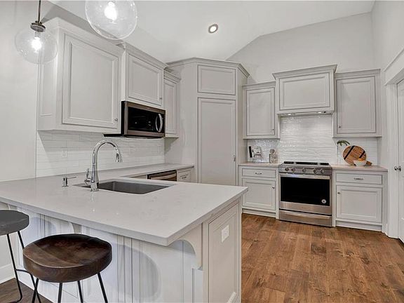 Maintenance provided living in the heart of Johnson County. Walkout finished basement with wet bar, bedroom and full bath! Light & bright w/vaulted ceilings in kitchen & living room. Screened in porch with natural gas grill. Custom plantation shutters throughout the house. Granite countertops, stainless steel appliances, natural gas oven and cook top, designer light fixtures, engineered hardwood flooring throughout the entire home. Large two car garage with garage heater and prewired for electric car charging on each side of the garage. Dual commercial water heaters and water softener. HOA covers building maintenance, lawn maintenance, club house, pool, snow removal, curbside trash service & water.