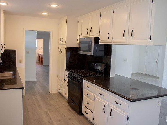 This beautifully upgraded 4-bedroom, 2-bath home with a 2-car garage is ready to impress! Step inside to find a formal living room and dining area, perfect for hosting guests. The spacious great room features a cozy fireplace, seamlessly connecting to a lovely kitchen that any home chef will appreciate. The primary bedroom boasts vaulted ceilings, a full bathroom with a separate tub and shower, a spacious walk-in closet, and private access to the backyard. Enjoy your outdoor with a large, covered patio, block wall and a sparkling pool that has been recently replastered and updated with newer equipmentideal for entertaining and creating unforgettable memories. Additional highlights include a presidential roof, fresh interior paint, and newer flooring. Paid solar.