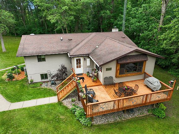 Welcome to your own backyard paradise. The seller will be splitting some perennials prior to closing. This 4 bdrm, 2 ba split entry is nestled at the end of a dead end road on 1.68 acres. Surrounded by trees and the Barron Flowage. Built in 1978 the home has had a number of updates. Living room in 2009 features a gas fireplace, kitchen in 2018 that will make you saw wow! Separate dining room for all your gatherings. Lower level offers a family room with wood fireplace, ¾ bath, office, laundry room with gas or elec dryer hook up and 4th bedrm – may be non-conforming. And wait until you see the bonus room! Two car detached garage and garden shed. The pictures don’t do this homes yard justice you truly must see. If you walk to the water you may even catch the swans.