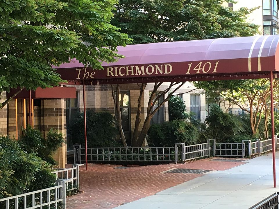 Perfectly located between Dupont and Logan Circle. The Richmond is a quiet haven in the heart of the city. Easy walk to 14th Street restaurants and nightlife. Three blocks to the Metro. Two blocks to Whole Foods. Hardwood floors in the living room with a balcony overlooking the pool- with a grill! Second balcony in the bedroom provides lots of natural light. Washer/ dryer in the unit. Three spacious closets. Open kitchen with dishwasher. Central AC. Well maintained third floor unit in a secure building. Must see in person. Come see your new home! Please call to schedule a visit. Washer/dryer in unit. Central AC/heating. Non-smokers only. No pets please. One year lease and $2200 security deposit. Owner pays all utilities except electric.