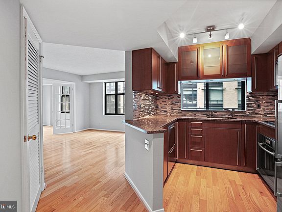 Offer Deadline is Tuesday, January 30th at 5pm. Light filled 4th floor condo with updated kitchen and excellent views. Spacious Primary bedroom with walk-in closet + en-suite bathroom. French doors in the living room lead to a 2nd bedroom/home office with full bathroom. Enjoy your morning coffee on the balcony overlooking the interior courtyard and rose garden. "The Richmond" is a luxury hi-rise building, located in the highly desirable "Dupont Circle" neighborhood. Experience "City Living" at its finest with easy access to some of the best restaurants D.C has to offer. Steps to Whole Foods, Safeway, CVS, art galleries, museums, parks, coffee shops...everything you could want is at your doorstep! This lovely condo features an open concept kitchen with contemporary cabinets, and stainless steel appliances. The HVAC was replaced around 5 years ago. The condo has hardwood floors, and a stacked washer/dryer. An assigned garage parking space is included. Bike racks are located on the secure parking level. There is no rental cap in the building, so this unit would be an excellent investment property too. The unit has been freshly painted and professionally deep cleaned, ready for you to move right in!