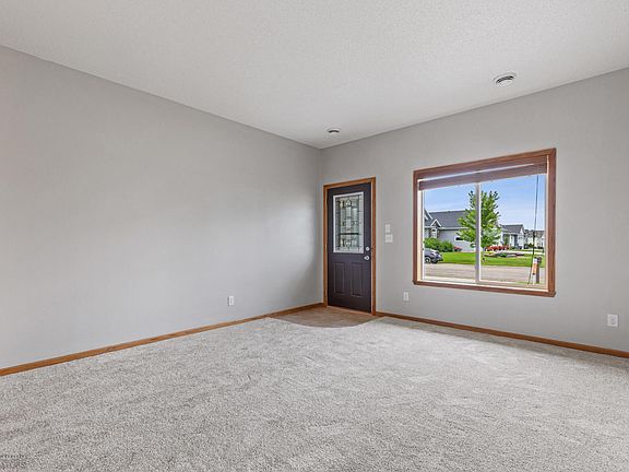 Two bedroom, two bathroom twinhome with No backyard neighbors and everything on one level! Slab-on-grade home means no basement, no steps, no sump pumps and no worries! Lots of updates: new roof in 2024, all new carpet (July 2024), water heater replaced 2022, fresh neutral paint and squeaky-clean condition! Forced air heat (off peak & backup propane) and central air conditioning for comfort in all seasons. Lots of storage - with closets in the hall, great storage near the garage entry and double closets in the primary bedroom suite. Light and bright kitchen has a window above the sink and a pantry and laundry room just around the corner. The adjacent dining room offers a sliding glass door to the concrete patio outside --With no neighbors behind, it's the perfect place for morning coffee. Attached 2 stall insulated garage. Barnesville is a short commute to the FM metro and very close to lakes-area fun! Make plans to come and take a look!