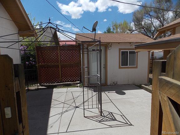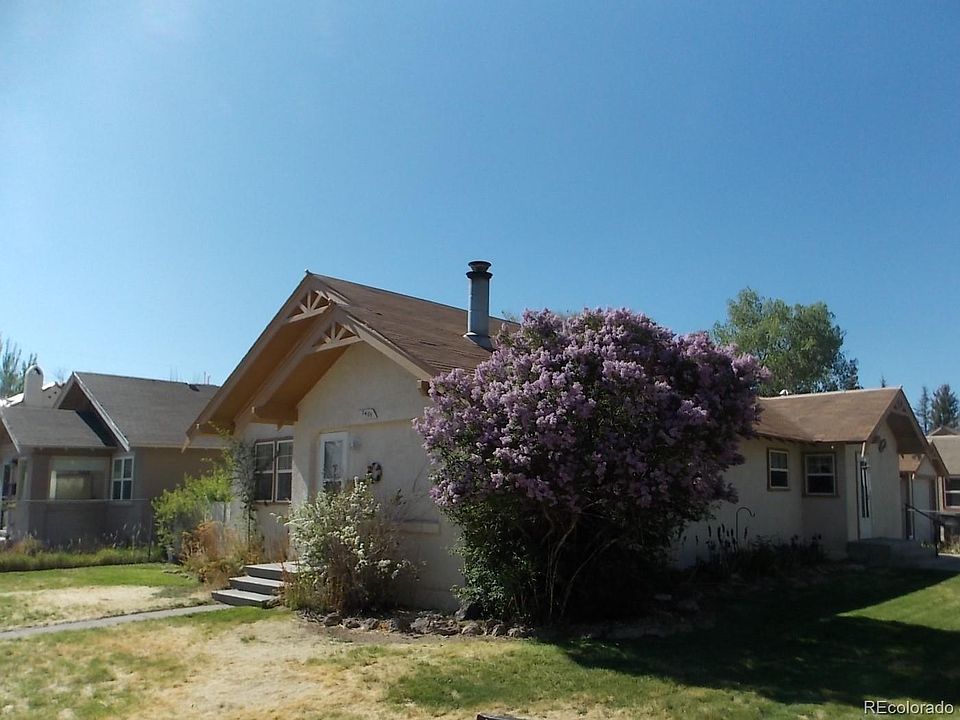 Great Location one block from Adams State. Large Living room with Fireplace, 3 Bedrooms, one bath, Kitchen has a great deal of storage. Utility room with washer, Dryer Hook ups. Newer windows On corner lot with easy access to Highway 160 and Shopping. Many of the rooms have hardwood floors. In back a secluded patio with Natural gas connection for your grill. Also out back there is a detached building that could be used as home office, mancave, or craft room. Detached one car garage, storage built along side of it. Must see to appreciate.