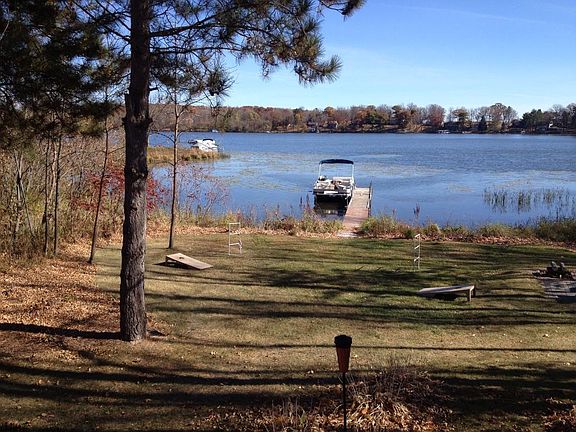 Beautiful cedar sided chalet on wooded acre lot w/191 ft. on all-purpose Upper Turtle Lake. Park like setting with level elevation to the waters edge. Over 190' of lakeshore. Oversized garage for storage and a bunk house for the kids. Impressive great room for entertaining, large wrap around deck on the lakeside. Stone fireplace, stamped concrete and many other updates. All of this 90 minutes from the Twin Cities Metro area.