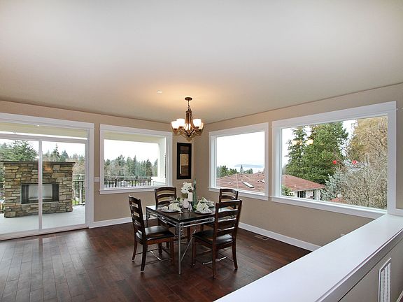 Showpiece new construction view home on huge lot. Incredible panoramic views of Puget Sound, Island, and Mountains throughout. Large open floor plan. Hardwood floors, granite slab, built in oven/micro, gas stove top in kitchen. Covered deck with gas fireplace off dining room. Exquisite master suite-5 piece bath, walk-in closet, private covered deck and phenomenal views. Loft area & laundry upstairs. Extra deep garage, plenty of parking, fully fenced back yard & nature reserve area offers tons of privacy.