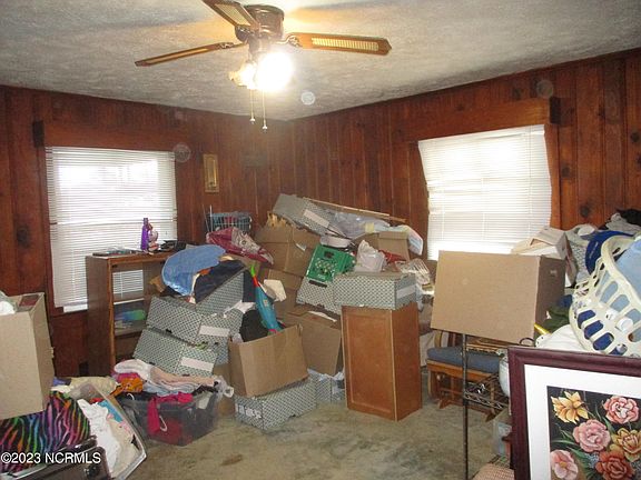 - Description: Carpet, C Fan, Knotted Pine Walls