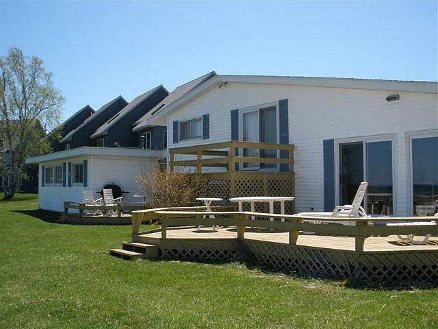 Lake Huron Investment Property.This direct waterfront home features spectacular morning sunrises over Mackinac Island and has double rental income. This 2-3 bedroom split-level home has 2 upper level bedrooms and a lower bonus room that could be converted to a bedroom or office. The adjoining 1 bedroom studio apt could be an in-law suite or just extra income, also sharing the lake view Both share a 2 car garage. Spacious deck for lakeside entertaining. A separate retail space can also be available with Business Loop-I-75 frontage.