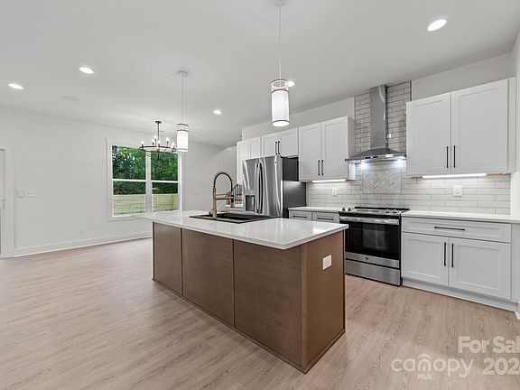 On a picturesque lot beside a peaceful creek, this newly constructed craftsman-style home boasts high end finishes and has NO HOA! Conveniently located just 10 mins from uptown Charlotte and 10 mins to Mtn Isle Lake. Step inside to discover luxury laminate flooring that spans the entirety of the home, complemented by upgraded lighting and wrought iron stair balusters. The kitchen and bathrooms showcase custom tile, while the upgraded stainless appliances, include a microwave and refrigerator. Convenience meets comfort with a guest bedroom and full bath on the main floor, while the spacious primary bedroom with its en suite bath awaits on the second level alongside 2 additional bedrooms and a full bath. Floating vanities add sophistication. Embrace the future with smart home tech featuring Ring doorbell, Sonos surround speakers, tankless water heater and more! Outside, you will find landscape lighting and a fully fenced backyard provides a great space for kids and pets to play.
