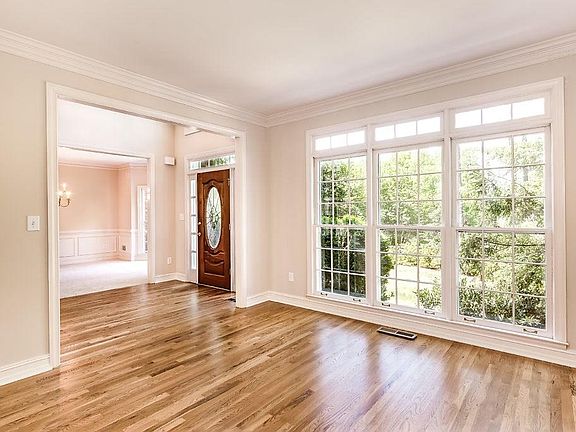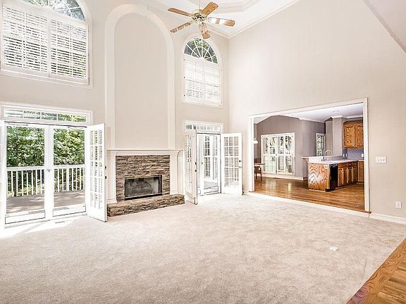 Lovely open, bright 3-sided brick traditional with side entry garage features 2-story family room open to breakfast area and kitchen, rich hardwood floors, main level bedroom and full bathroom; spacious master retreat with sitting area, three additional bedrooms and bathrooms on upper level; finished terrace-level features media/recreation rooms and lots of additional storage. Enjoy your cup of coffee on the deck overlooking a gorgeous private backyard. New carpet, move-in-ready! Incredible neighborhood offers lake walking trails, fantastic club house, swim/tennis, etc.