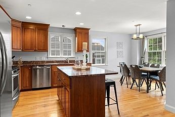 Discover this rarely find 3 bedrooms, 3.5 bathrooms end-unit townhouse, one of only four units, nestled alongside a quiet single-family neighborhood. Just a short walk to the Arboretum, this home offers the perfect blend of nature and city living. 1st floor, the kitchen and dining area include an island with cherry cabinets, creating a welcoming space for entertaining. The living room boasts a cozy gas fireplace and provides direct access to a private outdoor deck, perfect for grilling or enjoying some fresh air. 2nd floor, you'll find the primary bedroom complete with a walk-in closet and a full en-suite bath featuring a double vanity. An additional spacious bedroom and another full bathroom complete this floor. 3rd floor offers a versatile retreat with a large open room, skylight, cathedral ceiling, full bathroom, and generous closet space. This area can be used as a family room, playroom, home office, or even a bedroom suite with plenty of space for a sitting area. Additional highlights include hardwood floors throughout, central air conditioning, ample storage, and a garage for convenient parking. Located close to public transportation, restaurants, and shops, this townhouse is a perfect place to call home. Available Dec 1st, 2024. Initial lease term will be until July 31st, 2025 to align with school year. Renew annually. Don't miss out on this incredible rental opportunity! First month, last month, security deposit, and broker fee due at lease signing.